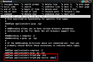 - Selanjutnya edit dan tambahkan index.php di /usr/local/etc/apache24/httpd.conf , untuk mengedit gunakan perintah