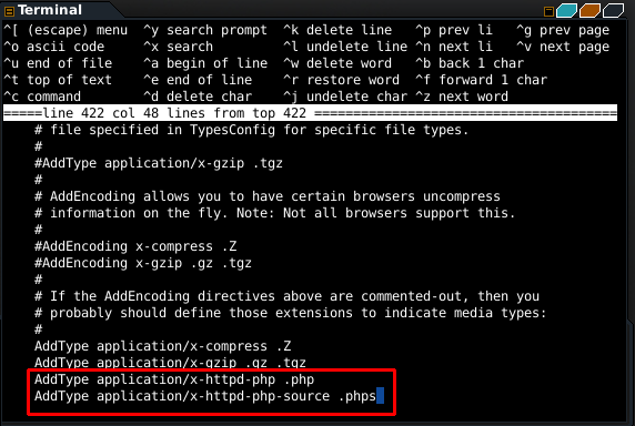 - Selanjutnya edit dan tambahkan index.php di /usr/local/etc/apache24/httpd.conf , untuk mengedit gunakan perintah