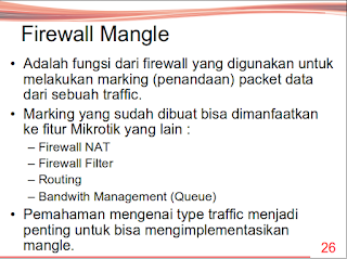 - Bisa menerapkan antrian yang ditandai melalui paket di /firewall mangle.