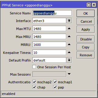 - 192.168.1.0/24 IP tersebut adalah IP yang akan digunakan untuk PPPoE Server