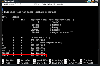 - edit db.roots , dengan perintah nano /etc/bind/db.roots