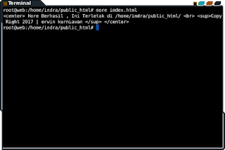 - buat file index.html di /home/indra/public_html/ , dengan perintah nano /home/indra/public_html/index.html dan isikan seperti di bawah