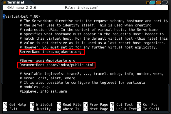 - Setelah di copy , edit indra.conf seperti di bawah