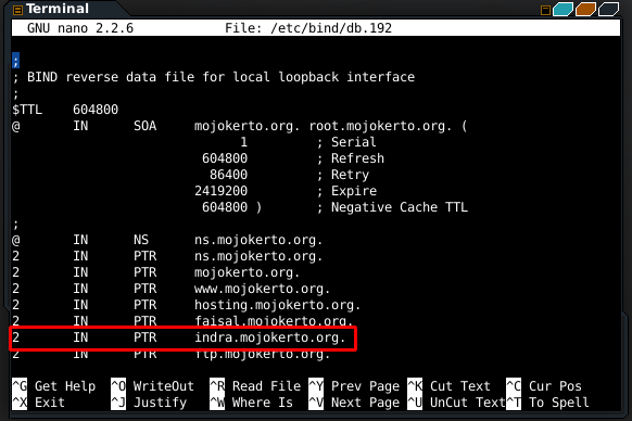 - edit db.192 , dengan perintah nano /etc/bind/db.192