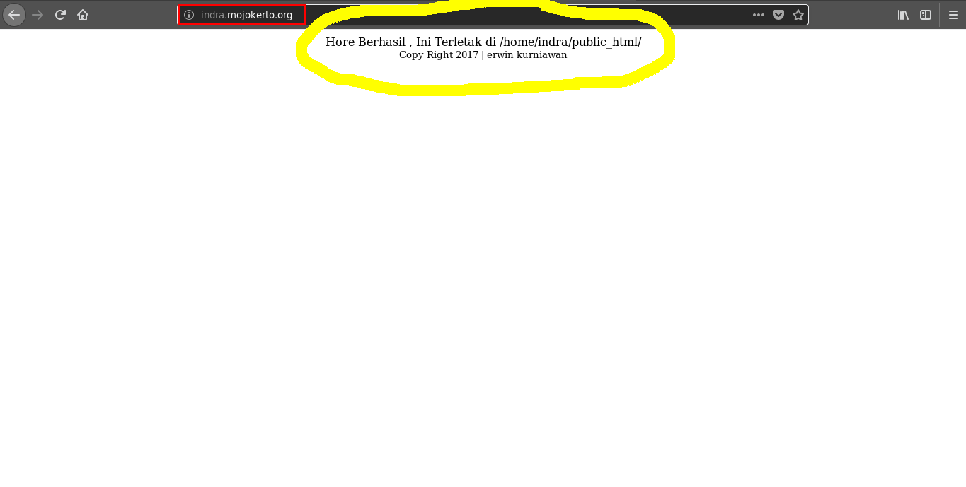 - Untuk hasil bisa di lihat di browser dengan subdomain yang telah di buat