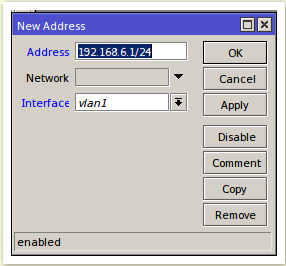 - pada konfigurasi diatas hanya membuat interface nya untuk selanjutnya bisa dikembangkan menjadi DHCP,PPP,bridge,VPN dan lainnya