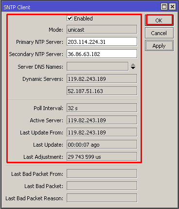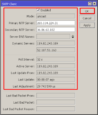 Pengertian SNTP Client adalah sistem pengaturan waktu yang ada pada RouterBorad Mikrotik.