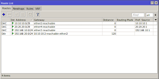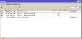 4. Kita lihat hasil nya di "IP" >> "Routes" maka hasil nya seperti berikut.