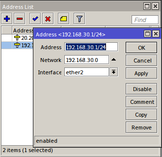 Ether 2 = 192.168.30.0/24