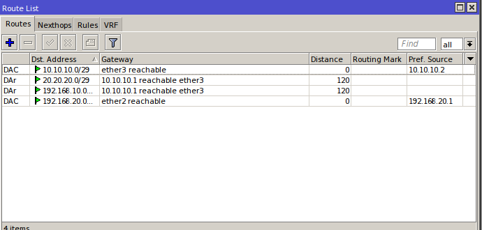 4. Kita lihat hasil nya di "IP" >> "Routes" maka hasil nya seperti berikut.