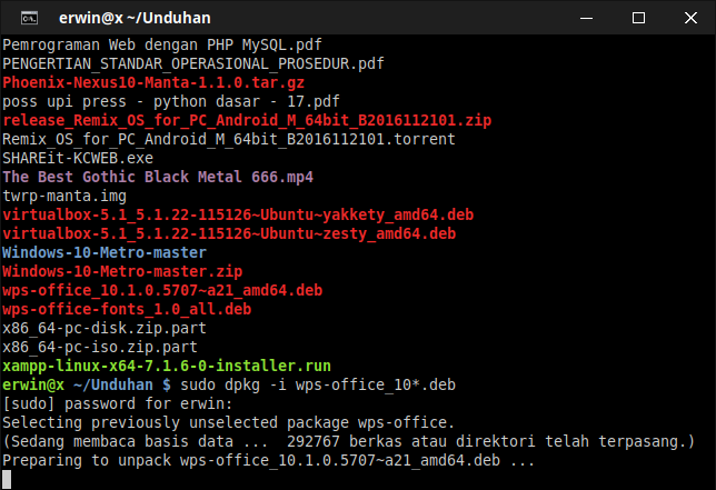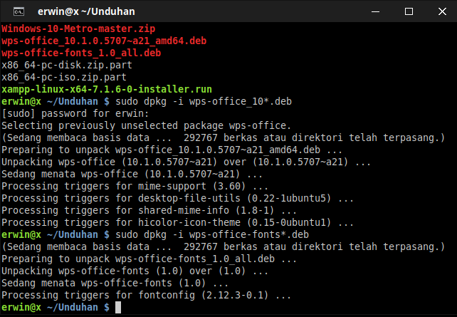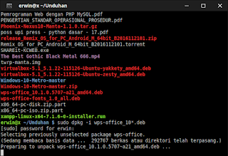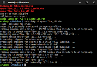 - Install WPS Officenya dengan ketikkan "sudo dpkg -i wps-office_10*.deb" Tunggu Hingga Selesai ..