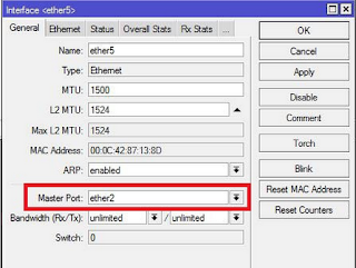 - ethernet5 saya klik2x>>master port (eth2)>>Ok