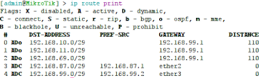 f. Kemudin kita lakukan pengecekan apakah sudah jadi atau belum, dengan masukan perintah : ip route print