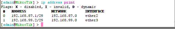 c. Kemudian kita lihat apakanh sudah jadi apa beum, dengan masukan perintah : ip address print. Seperti gambar di bawah ini.