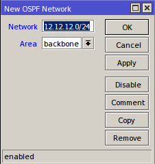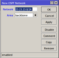 - Kemudian kita menambahkan direct network pada masing-masing router Routing>>OSPF>>Network