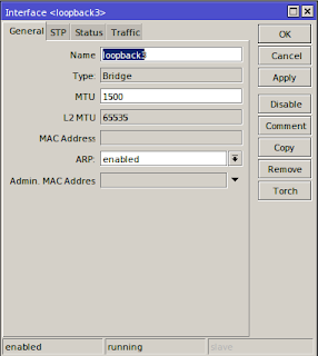 - Kemudian tambah intrface bridge lalu namai dengan loopback