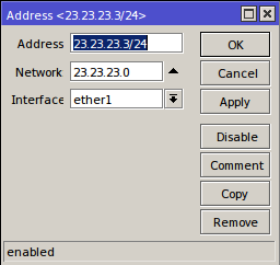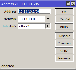 - Beri alamat ip pada masing masing mikrotik IP>>Address