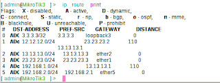 - Karena kita menambah dua client masing-masing ada di mikrotik1 dan mikrotik3,maka kita konfigurasi ip address dan menambahkan network unruk eth5 pada kedua router tersebut