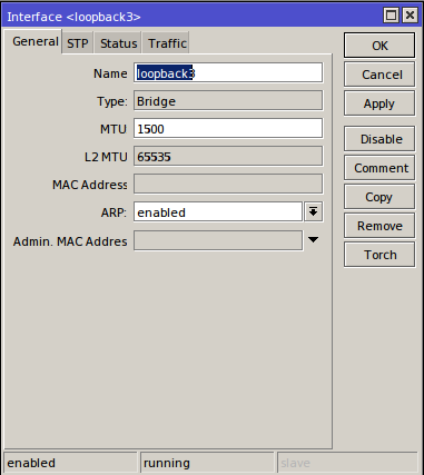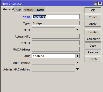 - Kemudian tambah intrface bridge lalu namai dengan loopback