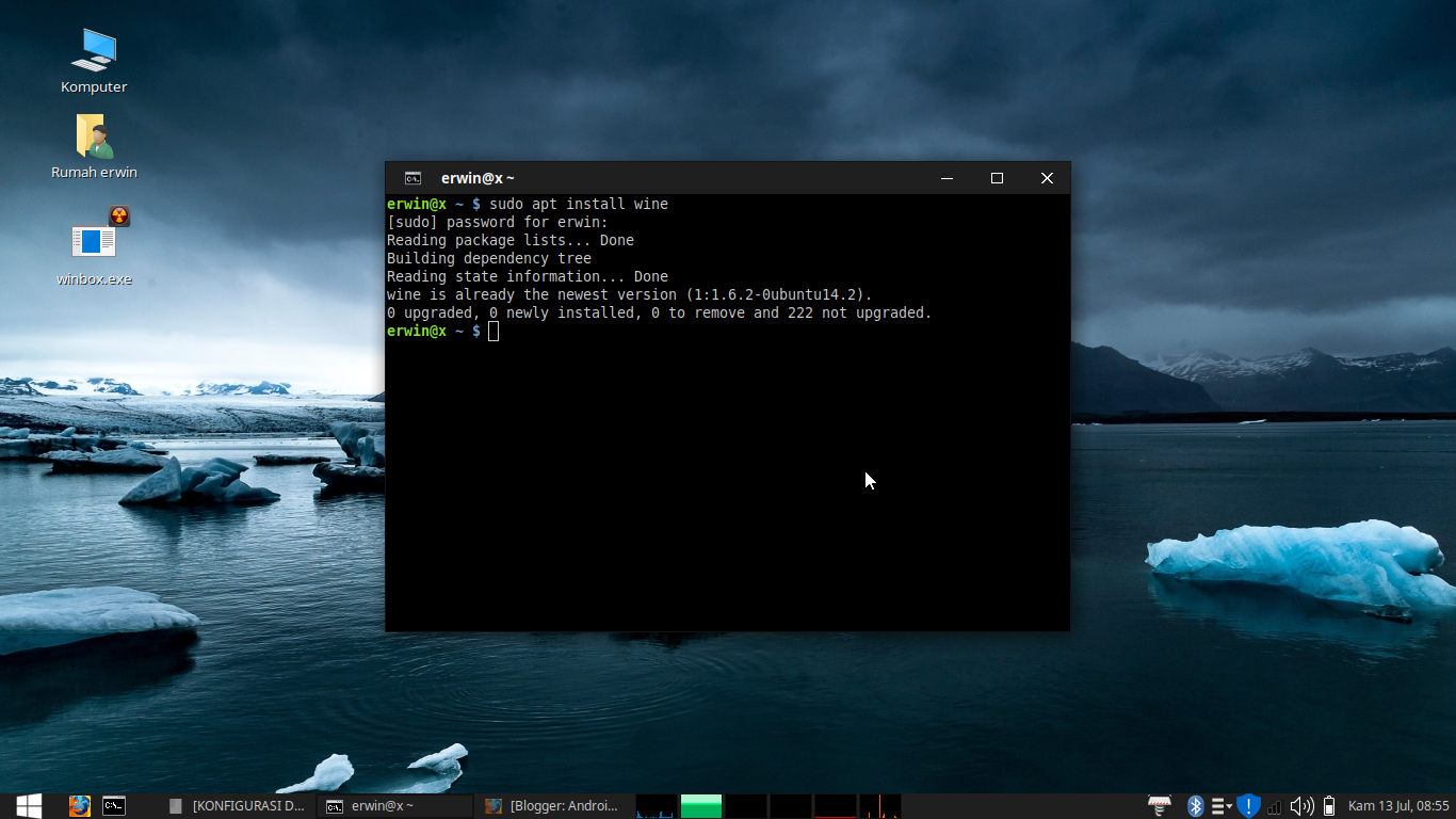 - Untuk Pengguna Linux , Download aplikasi wine untuk menjalankan winboxnya Jika Sudah buka winbox dengan wine , Klik kanan pada winbox open with wine